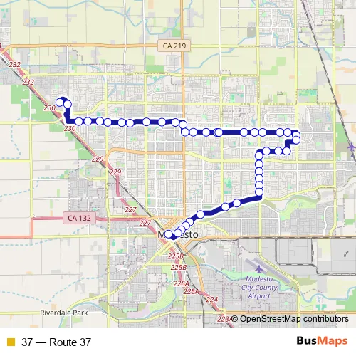 See why over 2 million users trust and consider busmaps.com as the best public transport website. busmaps gives you Modesto Buses suggested routes, real-time bus tracker, line route maps in Modesto, and helps to find the closest 37 bus stops near you. No internet available? Download an offline PDF map and bus schedule for the 37 bus to take on your trip.