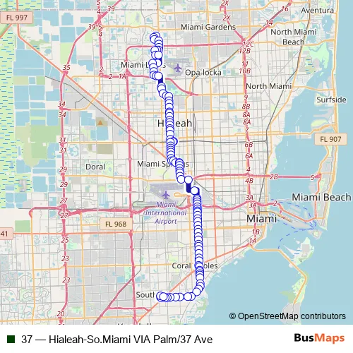 Bus 37 - Hialeah-So.Miami VIA Palm/37 Ave: Full Schedule in Miami