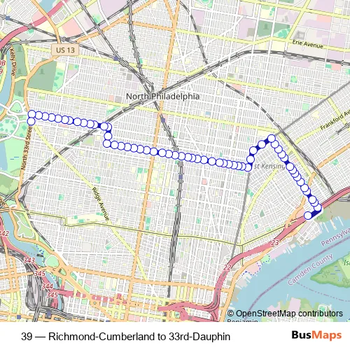 Bus 39 - Richmond-Cumberland to 33rd-Dauphin in Philadelphia: Stops & Timetable