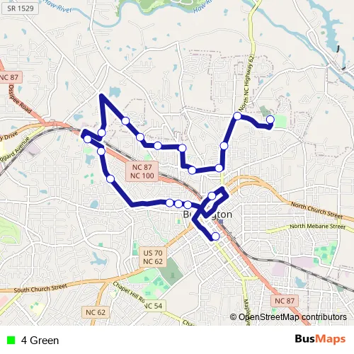The first stop of the 4 Green bus route is North Park Library and the last stop is Across from Burlington City Hall (Inbound). 4 Green is operational during todos los días.