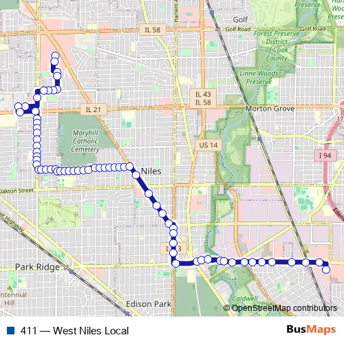 See why over 2 million users trust and consider busmaps.com as the best public transport website. busmaps gives you Niles Buses suggested routes, real-time bus tracker, line route maps in Niles, and helps to find the closest 411 bus stops near you. No internet available? Download an offline PDF map and bus schedule for the 411 bus to take on your trip.