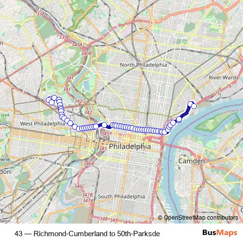 Bus 43 - Richmond-Cumberland to 50th-Parksde: Full Schedule in Philadelphia