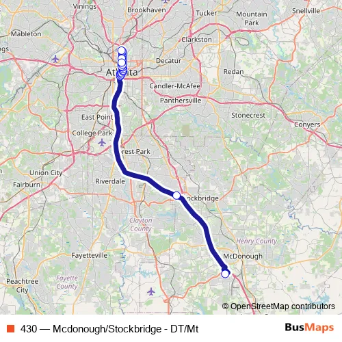 Bus 430 - Mcdonough/Stockbridge - DT/Mt in Atlanta: Stops & Timetable