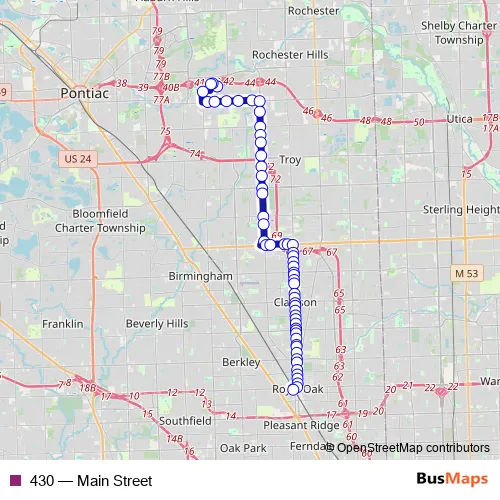 See why over 2 million users trust and consider busmaps.com as the best public transport website. busmaps gives you Pontiac Buses suggested routes, real-time bus tracker, line route maps in Pontiac, and helps to find the closest 430 bus stops near you. No internet available? Download an offline PDF map and bus schedule for the 430 bus to take on your trip.
