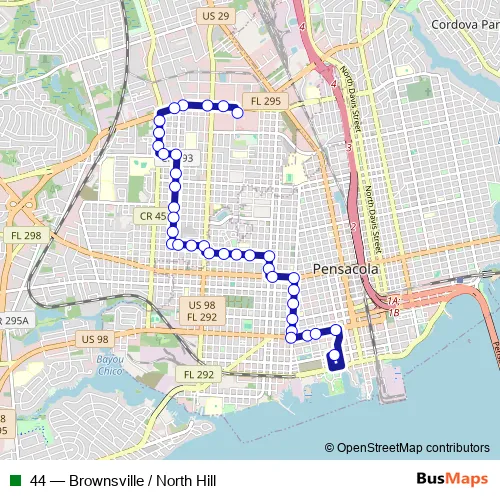 Bus 44 - Brownsville / North Hill in Pensacola: Stops & Timetable