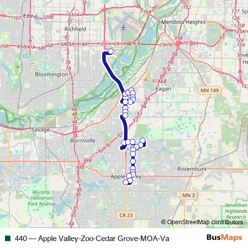 Click here to view the nearest 440 - Apple Valley-Zoo-Cedar Grove-MOA-Va bus stop.