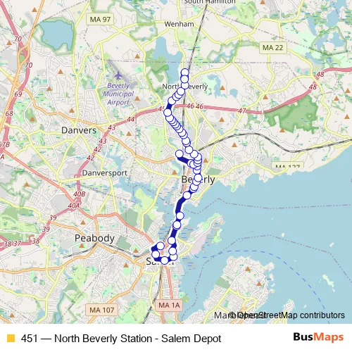 See why over 2 million users trust and consider busmaps.com as the best public transport website. busmaps gives you Beverly Buses suggested routes, real-time bus tracker, line route maps in Beverly, and helps to find the closest 451 bus stops near you. No internet available? Download an offline PDF map and bus schedule for the 451 bus to take on your trip.