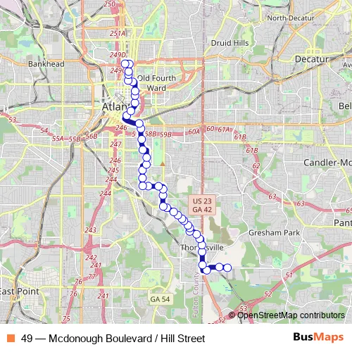 See why over 2 million users trust and consider busmaps.com as the best public transport website. busmaps gives you Atlanta Buses suggested routes, real-time bus tracker, line route maps in Atlanta, and helps to find the closest 49 bus stops near you. No internet available? Download an offline PDF map and bus schedule for the 49 bus to take on your trip.