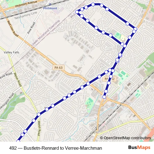 Bus 492 - Bustletn-Rennard to Verree-Marchman Schedule in Bryn Athyn