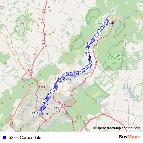 See why over 2 million users trust and consider busmaps.com as the best public transport website. busmaps gives you Scranton Buses suggested routes, real-time bus tracker, line route maps in Scranton, and helps to find the closest 52 bus stops near you. No internet available? Download an offline PDF map and bus schedule for the 52 bus to take on your trip.