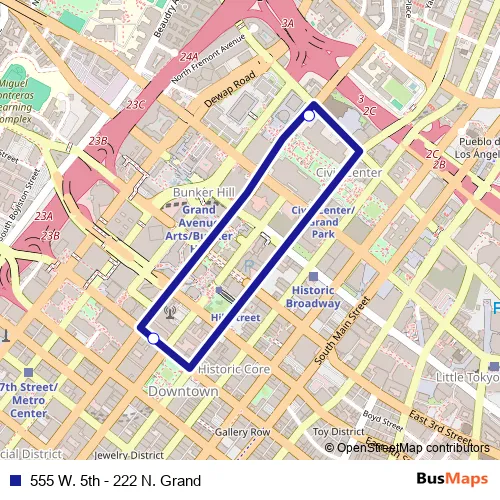 See why over 2 million users trust and consider busmaps.com as the best public transport website. busmaps gives you Los Angeles Buses suggested routes, real-time bus tracker, line route maps in Los Angeles, and helps to find the closest 555 W. 5th - 222 N. Grand bus stops near you. No internet available? Download an offline PDF map and bus schedule for the 555 W. 5th - 222 N. Grand bus to take on your trip.