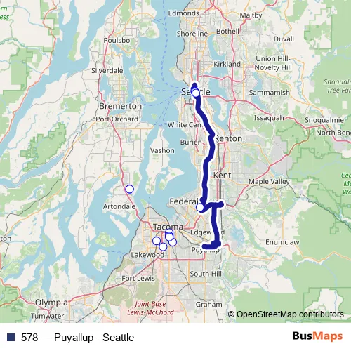 See why over 2 million users trust and consider busmaps.com as the best public transport website. busmaps gives you Seattle Buses suggested routes, real-time bus tracker, line route maps in Seattle, and helps to find the closest 578 bus stops near you. No internet available? Download an offline PDF map and bus schedule for the 578 bus to take on your trip.