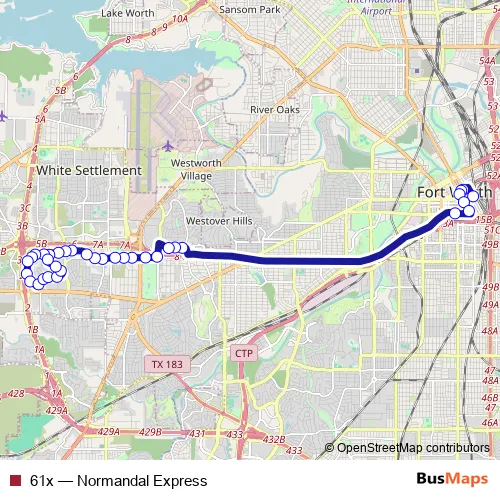 See why over 2 million users trust and consider busmaps.com as the best public transport website. busmaps gives you Fort Worth Buses suggested routes, real-time bus tracker, line route maps in Fort Worth, and helps to find the closest 61x bus stops near you. No internet available? Download an offline PDF map and bus schedule for the 61x bus to take on your trip.