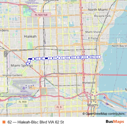 See why over 2 million users trust and consider busmaps.com as the best public transport website. busmaps gives you Miami Buses suggested routes, real-time bus tracker, line route maps in Miami, and helps to find the closest 62 bus stops near you. No internet available? Download an offline PDF map and bus schedule for the 62 bus to take on your trip.
