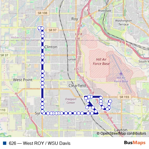 Click here to view the nearest 626 - West ROY / WSU Davis bus stop.