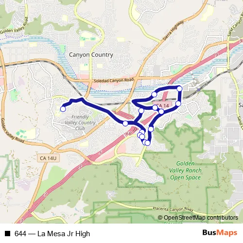 The first stop of the 644 bus route is Via Princessa & Costco Plaza and the last stop is May Wy & Citylight Ct. 644 (La Mesa Jr High) is operational during entre semana.