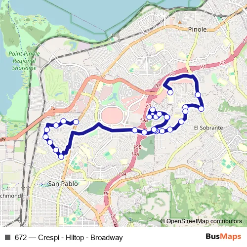 Bus 672 - Crespi - Hiltop - Broadway Schedule in El Sobrante