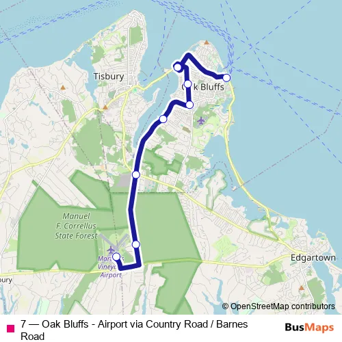 Bus 7 - Oak Bluffs - Airport via Country Road / Barnes Road: Full Schedule in Edgartown