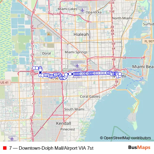 Bus 7 - Downtown-Dolph Mall/Airport VIA 7st: Full Schedule in Miami