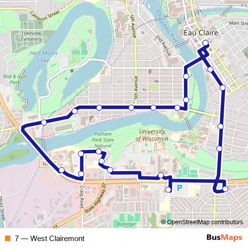 See why over 2 million users trust and consider busmaps.com as the best public transport website. busmaps gives you Eau Claire Buses suggested routes, real-time bus tracker, line route maps in Eau Claire, and helps to find the closest 7 bus stops near you. No internet available? Download an offline PDF map and bus schedule for the 7 bus to take on your trip.