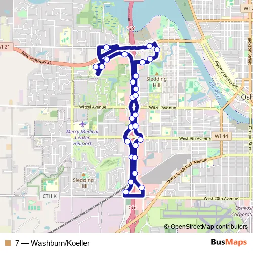 See why over 2 million users trust and consider busmaps.com as the best public transport website. busmaps gives you Oshkosh Buses suggested routes, real-time bus tracker, line route maps in Oshkosh, and helps to find the closest 7 bus stops near you. No internet available? Download an offline PDF map and bus schedule for the 7 bus to take on your trip.