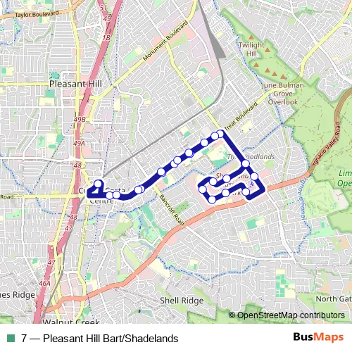 Click here to view the nearest 7 - Pleasant Hill Bart/Shadelands bus stop.