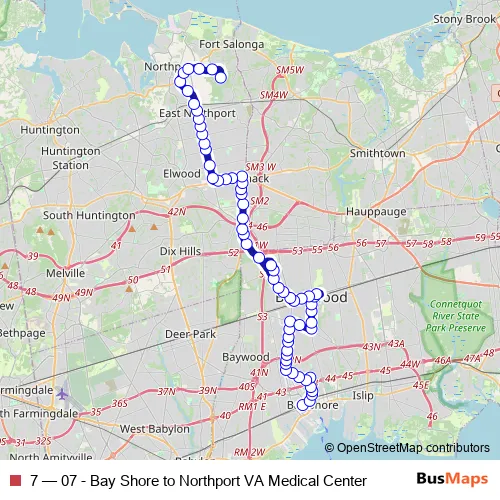 Click here to view the nearest 7 - 07 - Bay Shore to Northport VA Medical Center bus stop.