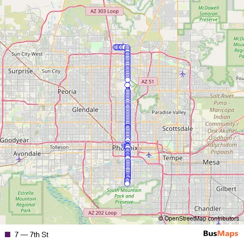 See why over 2 million users trust and consider busmaps.com as the best public transport website. busmaps gives you Phoenix Buses suggested routes, real-time bus tracker, line route maps in Phoenix, and helps to find the closest 7 bus stops near you. No internet available? Download an offline PDF map and bus schedule for the 7 bus to take on your trip.
