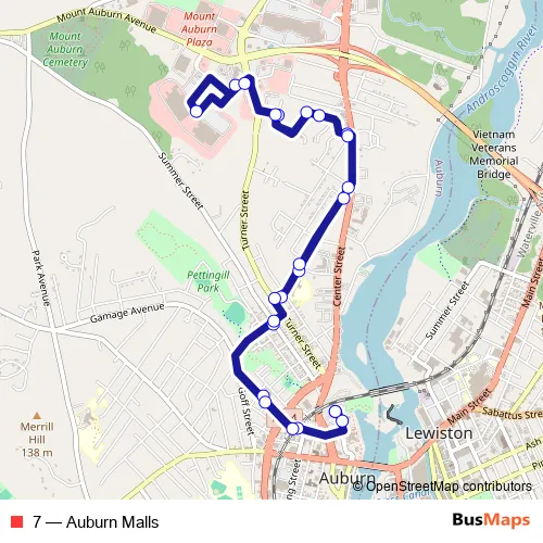 The first stop of the 7 bus route is Auburn Transportation Center, Great Falls and the last stop is Auburn Transportation Center, Great Falls. 7 (Auburn Malls) is operational during todos los días.