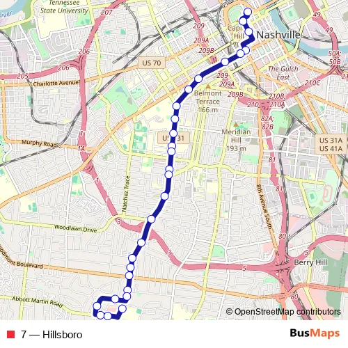 See why over 2 million users trust and consider busmaps.com as the best public transport website. busmaps gives you Nashville Buses suggested routes, real-time bus tracker, line route maps in Nashville, and helps to find the closest 7 bus stops near you. No internet available? Download an offline PDF map and bus schedule for the 7 bus to take on your trip.