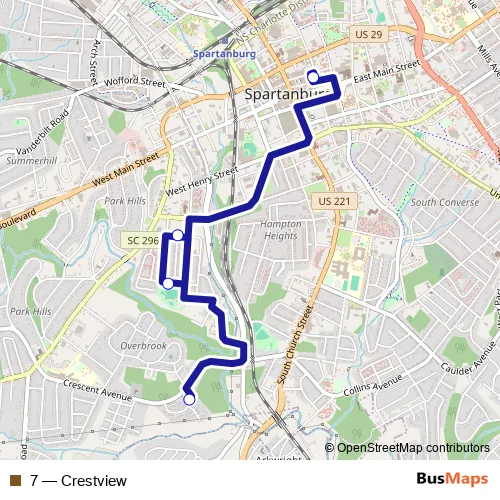 See why over 2 million users trust and consider busmaps.com as the best public transport website. busmaps gives you Spartanburg Buses suggested routes, real-time bus tracker, line route maps in Spartanburg, and helps to find the closest 7 bus stops near you. No internet available? Download an offline PDF map and bus schedule for the 7 bus to take on your trip.