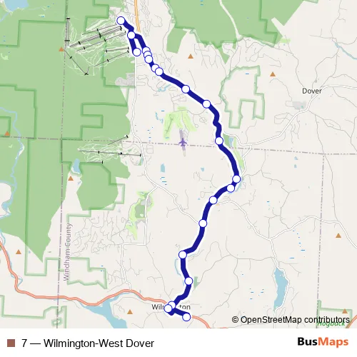 The first stop of the 7 bus route is Mount Snow drop zone and the last stop is Shaws. 7 (Wilmington-West Dover) is operational during todos los días.