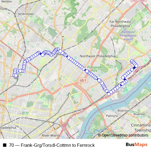 Bus 70 - Frank-Grg/Torsdl-Cottmn to Fernrock: Full Schedule in Philadelphia