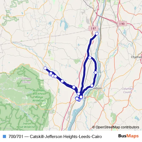 The first stop of the 700/701 bus route is Arc Mid-Hudson - Catskill and the last stop is Arc Mid-Hudson - Catskill. 700/701 (Catskill-Jefferson Heights-Leeds-Cairo) is operational during entre semana.