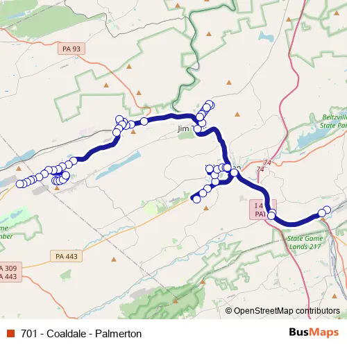 Additional information: 701 - Coaldale - Palmerton has 61 stops and the total trip duration