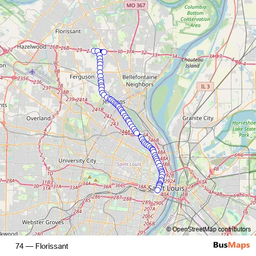 See why over 2 million users trust and consider busmaps.com as the best public transport website. busmaps gives you St. Louis Buses suggested routes, real-time bus tracker, line route maps in St. Louis, and helps to find the closest 74 bus stops near you. No internet available? Download an offline PDF map and bus schedule for the 74 bus to take on your trip.