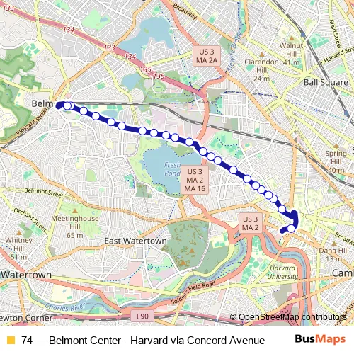 Bus 74 - Belmont Center - Harvard via Concord Avenue Schedule in Boston
