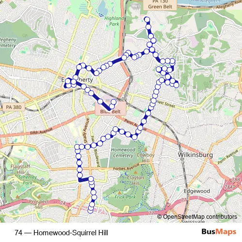 Click here to view the nearest 74 - Homewood-Squirrel Hill bus stop.