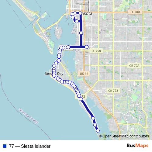 Bus 77 - Siesta Islander in Sarasota: Stops & Timetable
