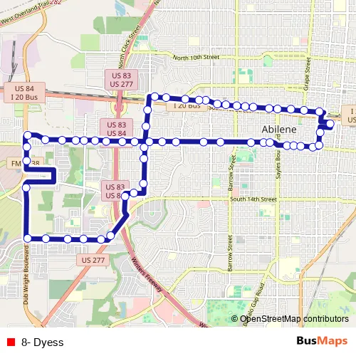 See why over 2 million users trust and consider busmaps.com as the best public transport website. busmaps gives you Abilene Buses suggested routes, real-time bus tracker, line route maps in Abilene, and helps to find the closest 8- Dyess bus stops near you. No internet available? Download an offline PDF map and bus schedule for the 8- Dyess bus to take on your trip.