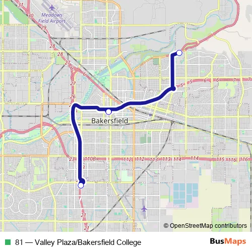 Bus 81 - Valley Plaza/Bakersfield College in Bakersfield: Stops & Timetable