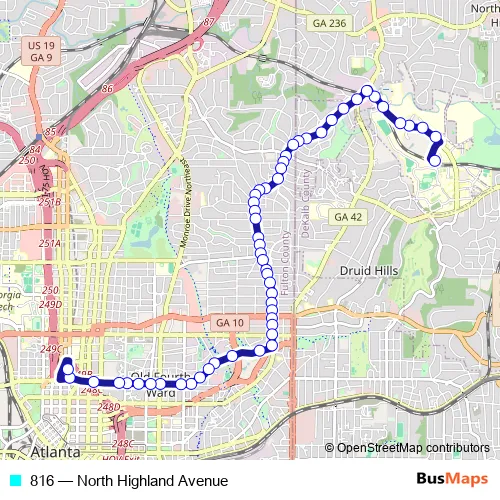 Bus 816 - North Highland Avenue Schedule in Atlanta