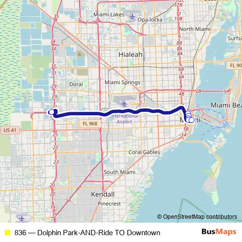 See why over 2 million users trust and consider busmaps.com as the best public transport website. busmaps gives you Miami Buses suggested routes, real-time bus tracker, line route maps in Miami, and helps to find the closest 836 bus stops near you. No internet available? Download an offline PDF map and bus schedule for the 836 bus to take on your trip.
