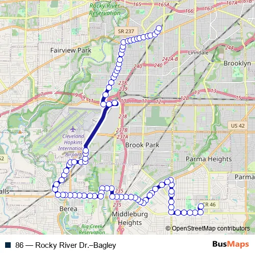 See why over 2 million users trust and consider busmaps.com as the best public transport website. busmaps gives you Cleveland Buses suggested routes, real-time bus tracker, line route maps in Cleveland, and helps to find the closest 86 bus stops near you. No internet available? Download an offline PDF map and bus schedule for the 86 bus to take on your trip.