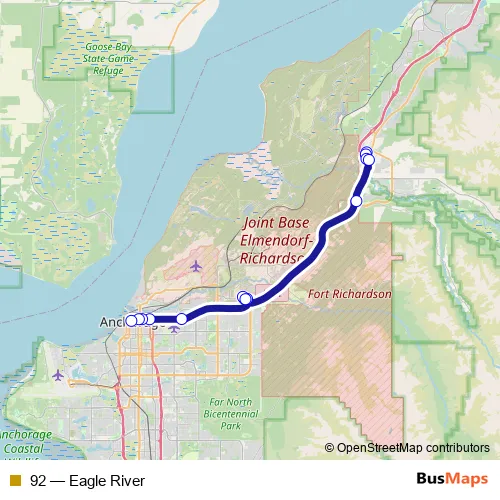 See why over 2 million users trust and consider busmaps.com as the best public transport website. busmaps gives you Anchorage Buses suggested routes, real-time bus tracker, line route maps in Anchorage, and helps to find the closest 92 bus stops near you. No internet available? Download an offline PDF map and bus schedule for the 92 bus to take on your trip.