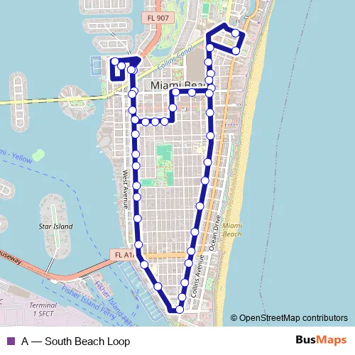 Bus A - South Beach Loop in Miami: Stops & Timetable