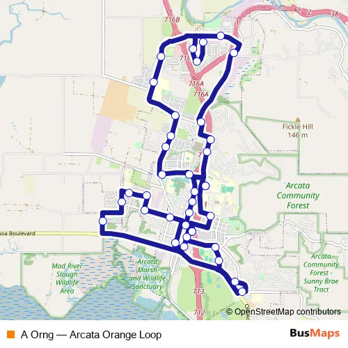 Bus A Orng - Arcata Orange Loop in Eureka: Stops & Timetable