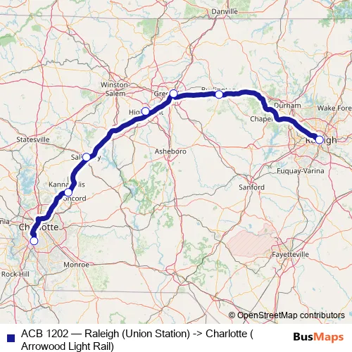 Bus ACB 1202 - Raleigh (Union Station) -> Charlotte (Arrowood Light Rail): Full Schedule in Salisbury