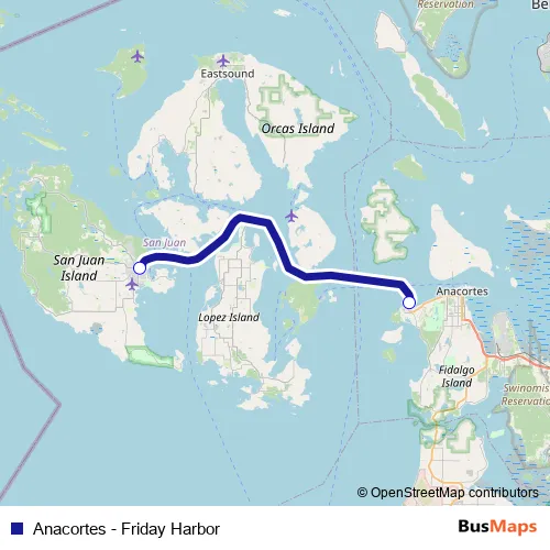 Additional information: Anacortes - Friday Harbor has 2 stops and the total trip duration for this route is approximately 90 minutes.