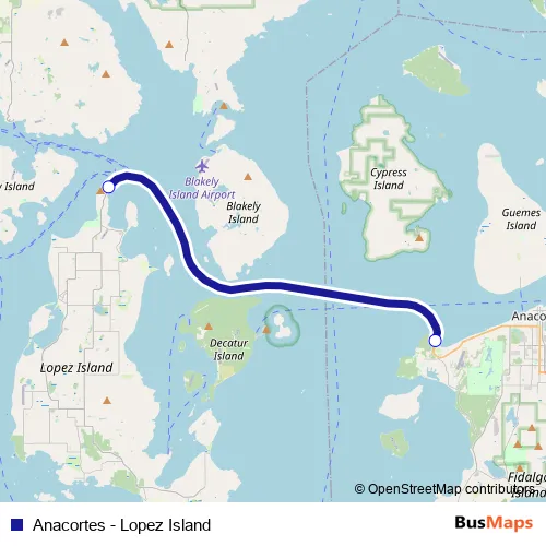 The first stop of the Anacortes - Lopez Island ferry route is Anacortes and the last stop is Lopez Island. Anacortes - Lopez Island (Anacortes - Lopez Island) is operational during todos los días.